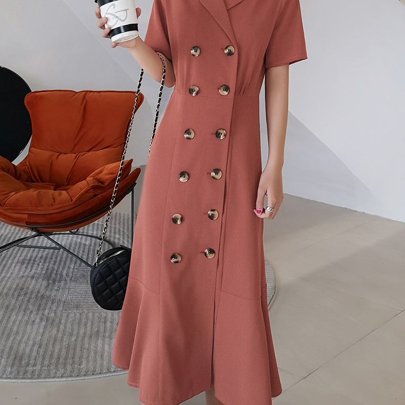 女夏鱼尾收腰西装短袖瘦长连衣裙