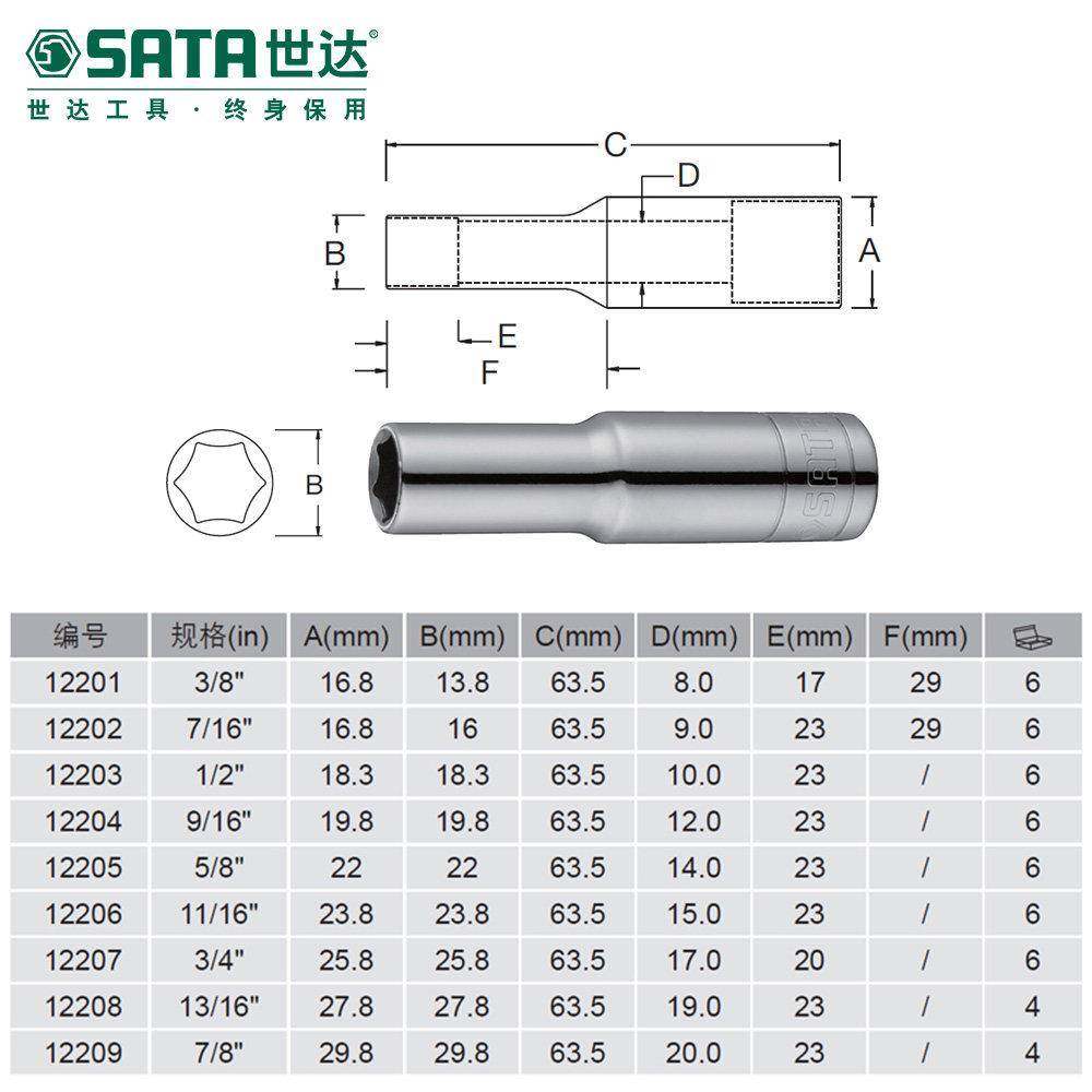 世达中飞英制加长套筒 10mm3/8端口六角套管头工具棘轮扳手套筒