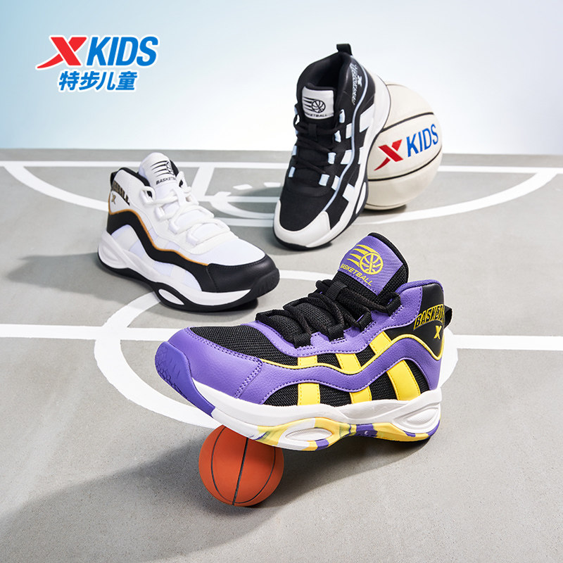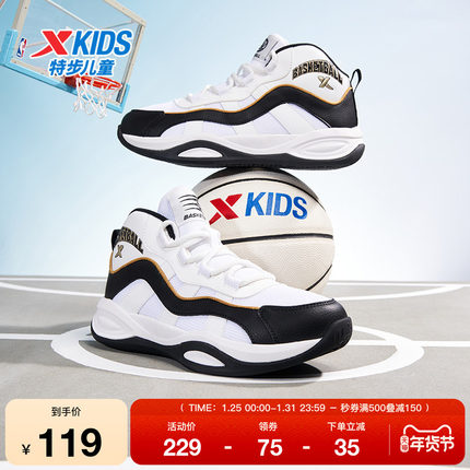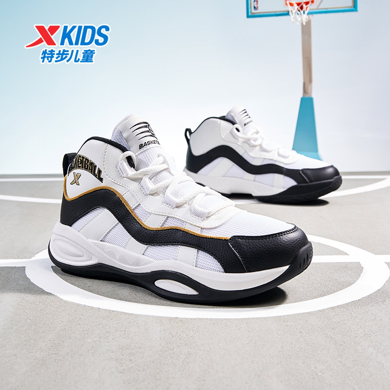 特步童鞋秋季新款儿童运动跑鞋男童耐磨减震缓震中大童系带篮球鞋