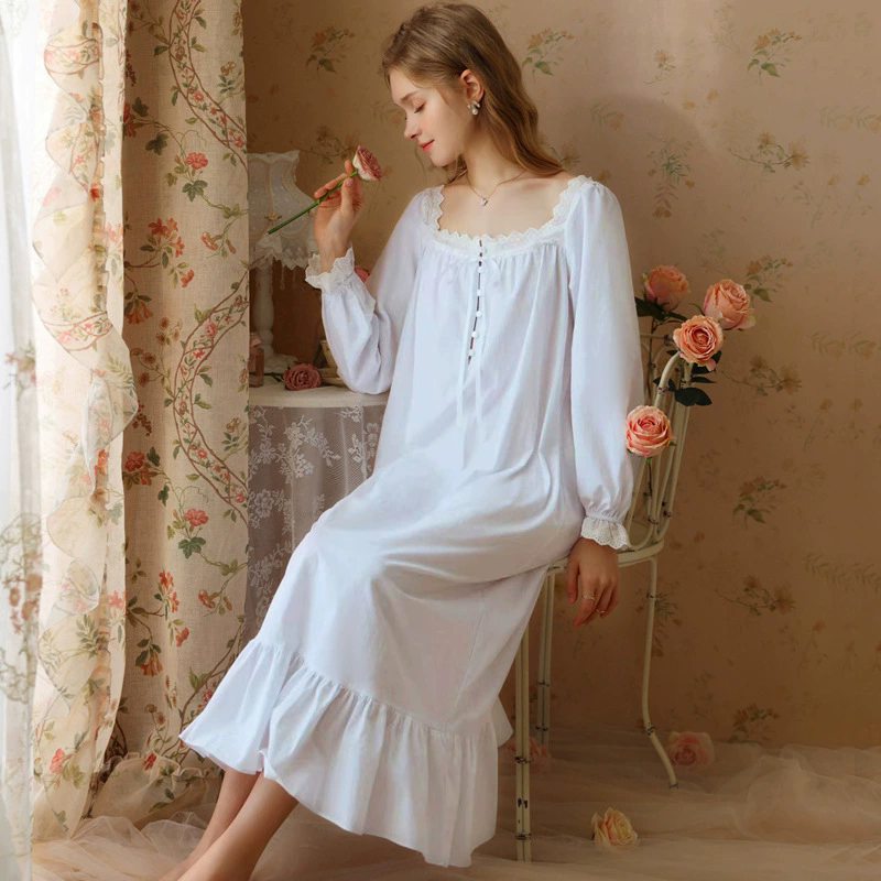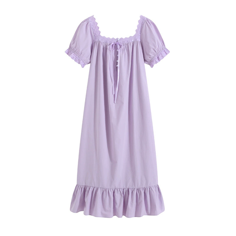 宫廷风睡裙女春夏长袖方领性感复古法式公主短袖长款睡衣家居服女