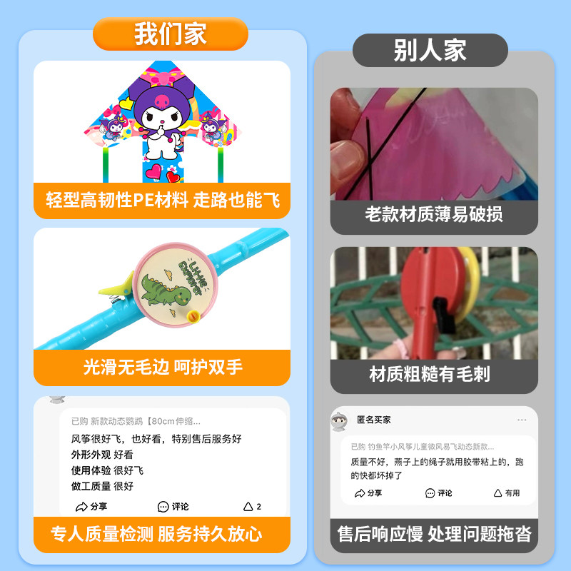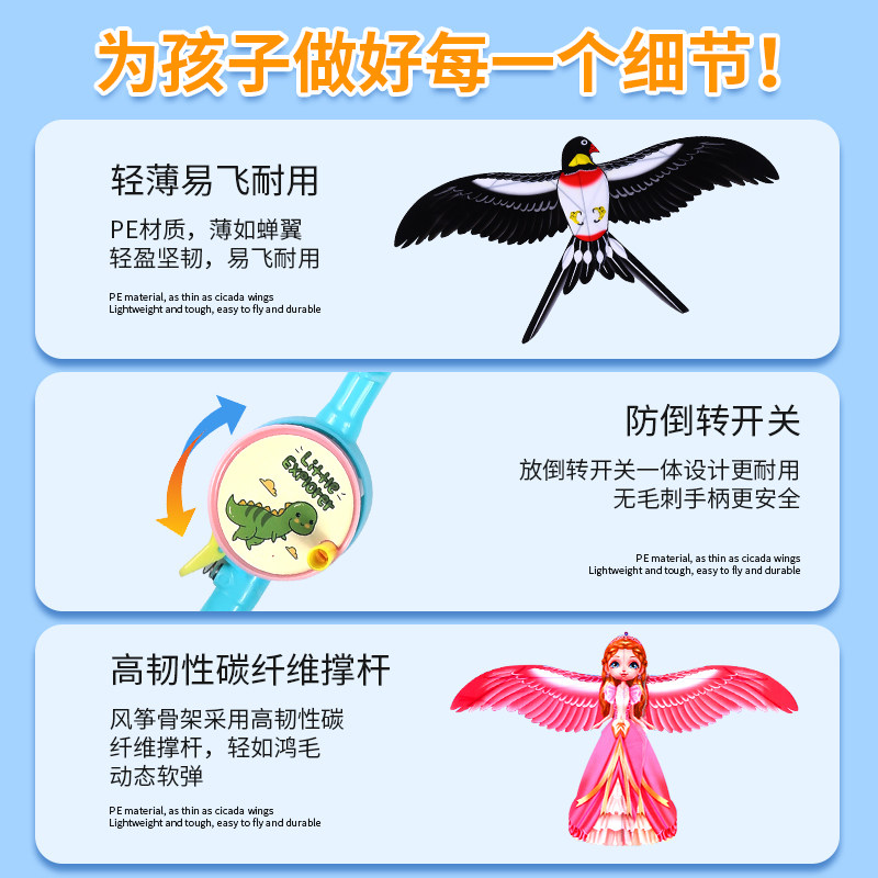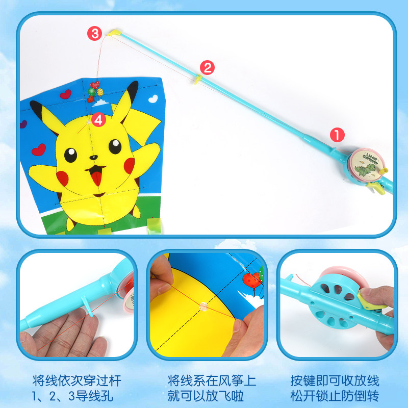 风筝儿童手持钓鱼竿风筝微风易飞潍坊新款迷你塑料小风筝金鱼蝴蝶