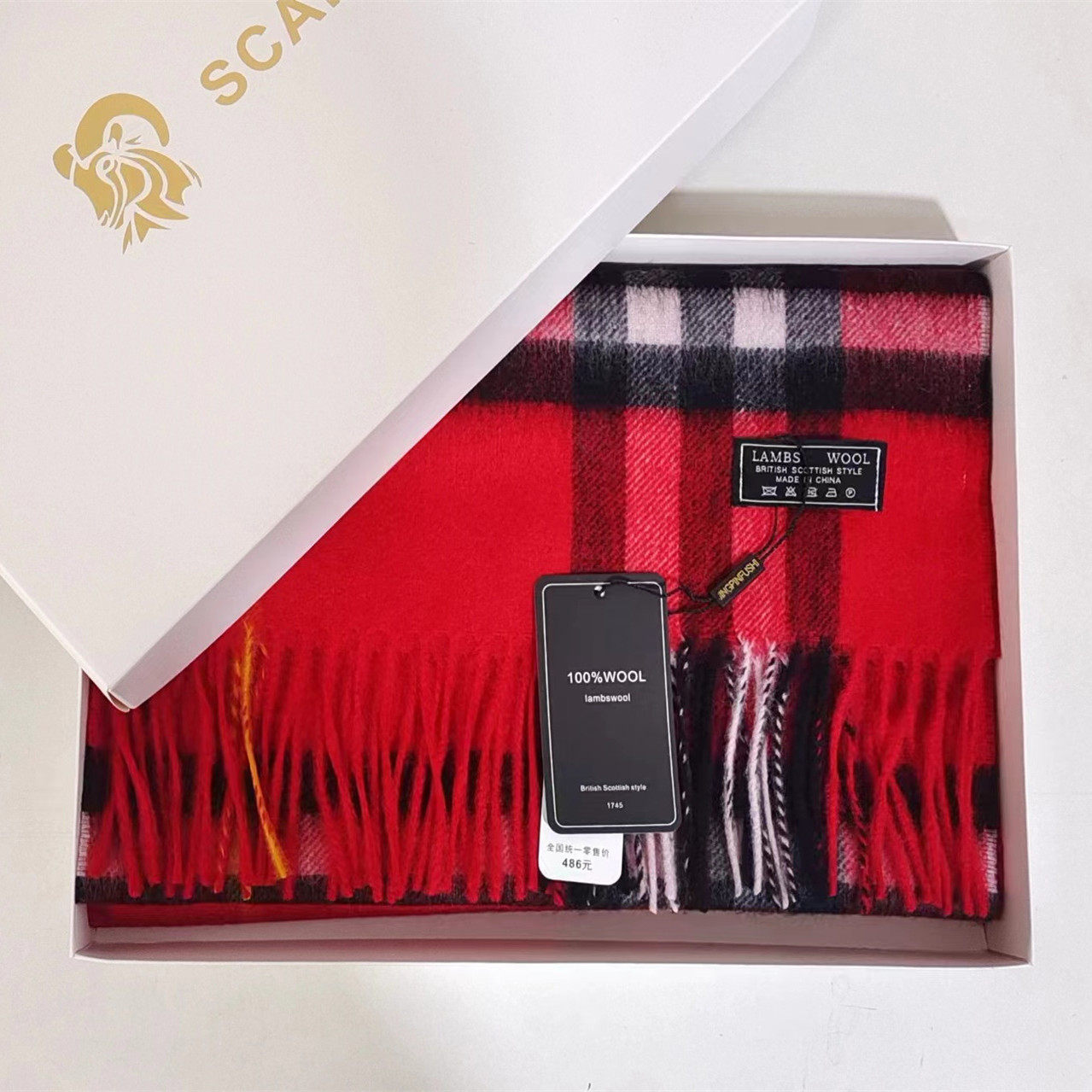 新款纯羊毛格子礼品围巾男女冬季学生高档时尚百搭保暖英伦围脖