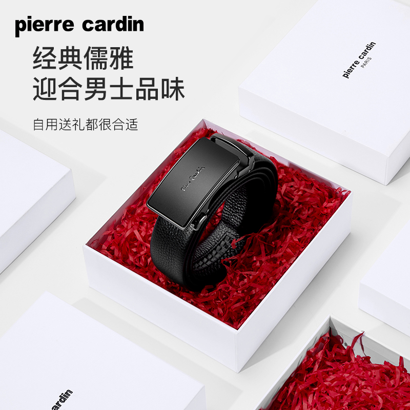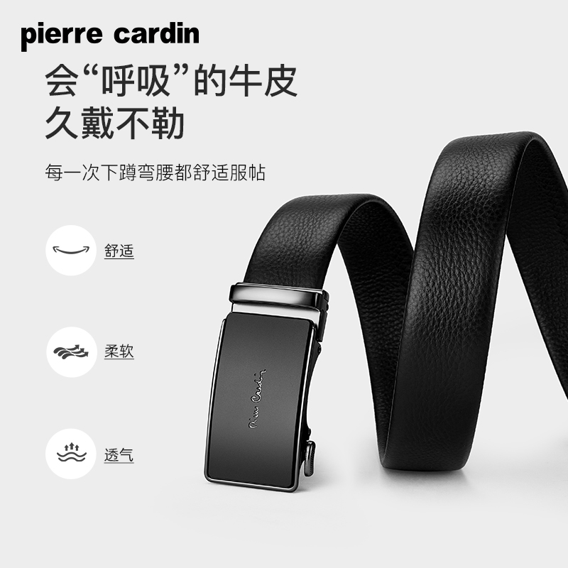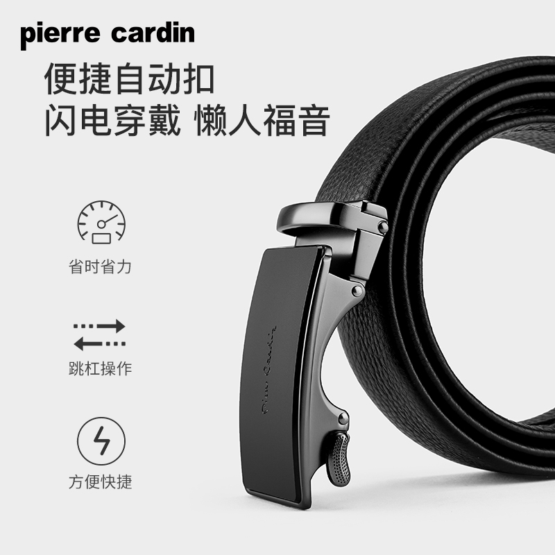 皮尔卡丹皮带男款真皮自动扣男士商务腰带头层牛皮高档男式裤腰带