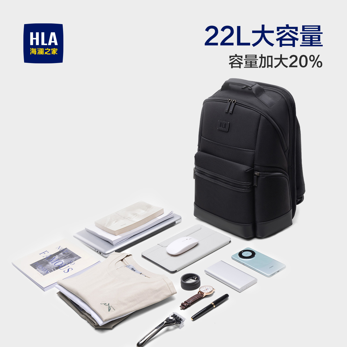 HLA/海澜之家双肩包男士商务通勤休闲大容量短途旅行电脑背包男包