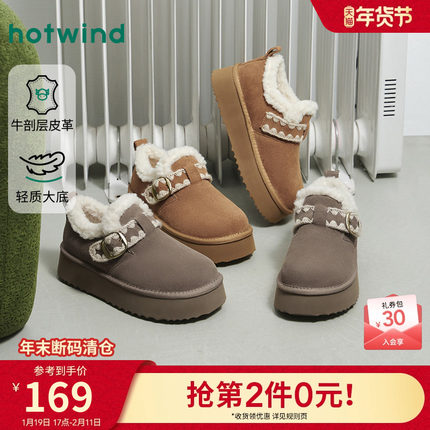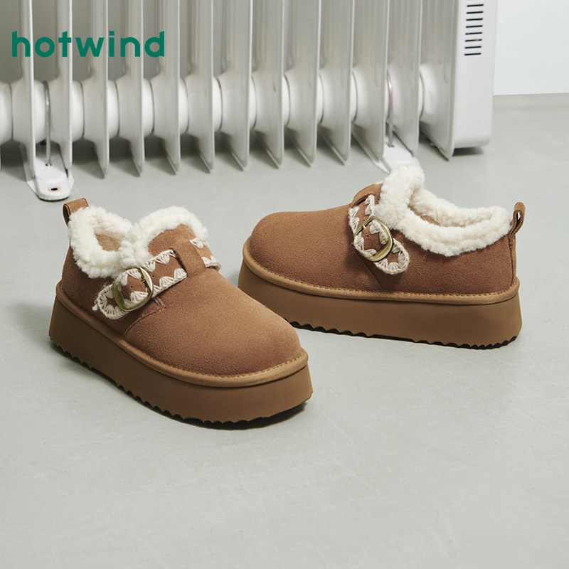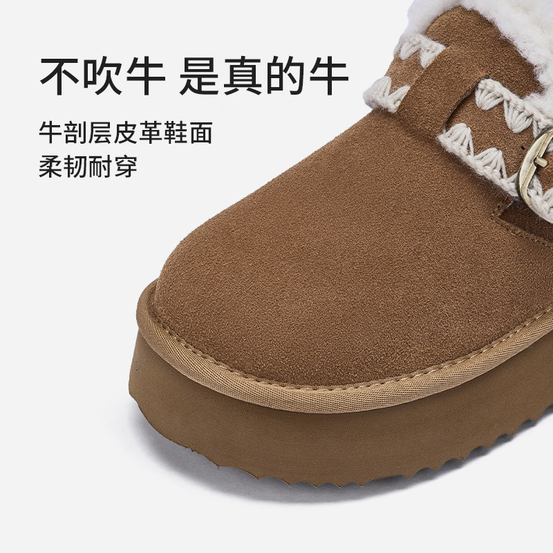 热风勃肯风毛毛鞋2025年冬季新款厚底增高雪地靴子百搭休闲棉鞋女
