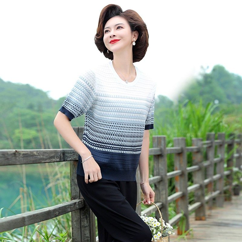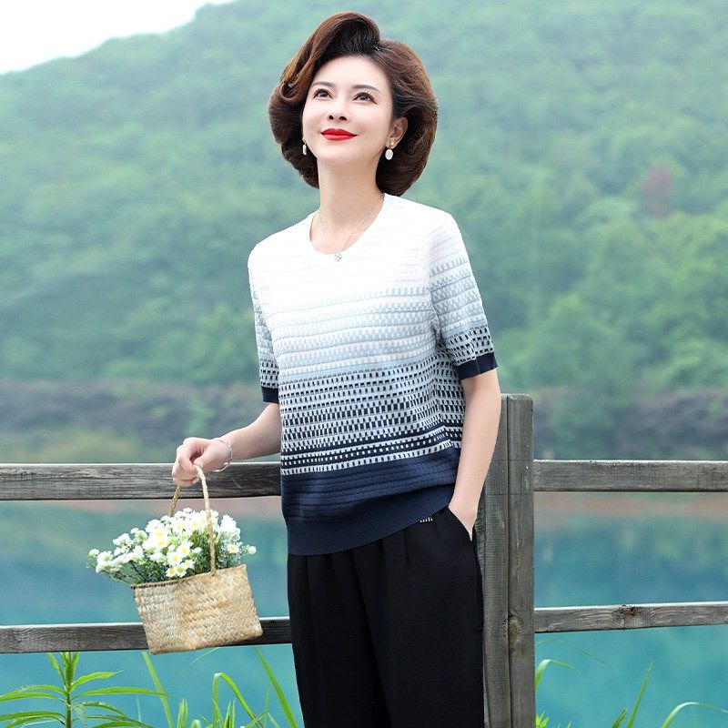 妈妈夏装洋气冰丝母亲节衣服中年女装短袖T恤2024新款中老年套装