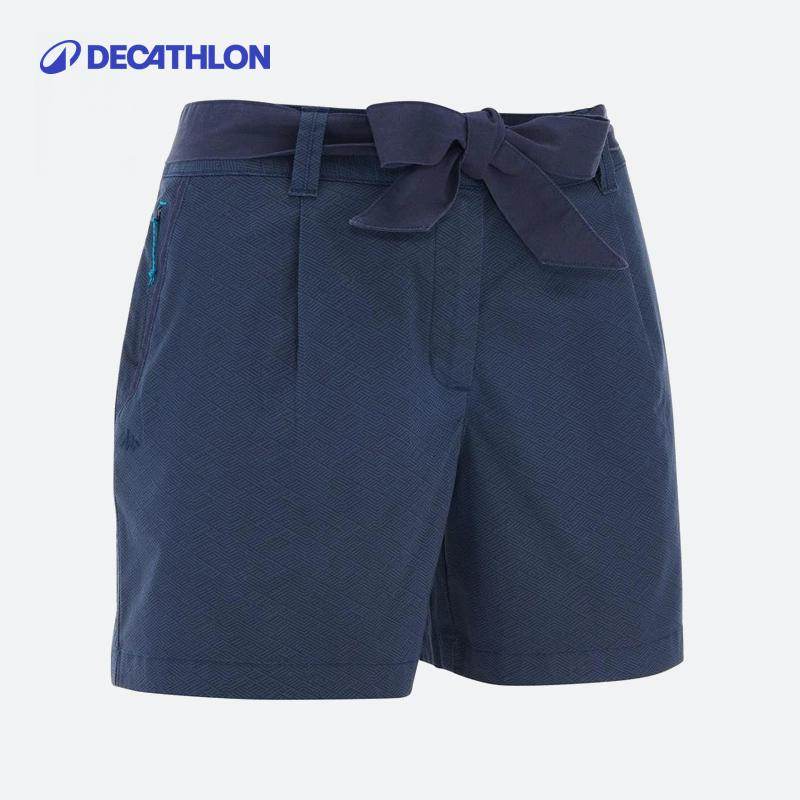 迪卡侬官网女休闲徒步登山裤棉印花运动女士短裤透气快干ODT1