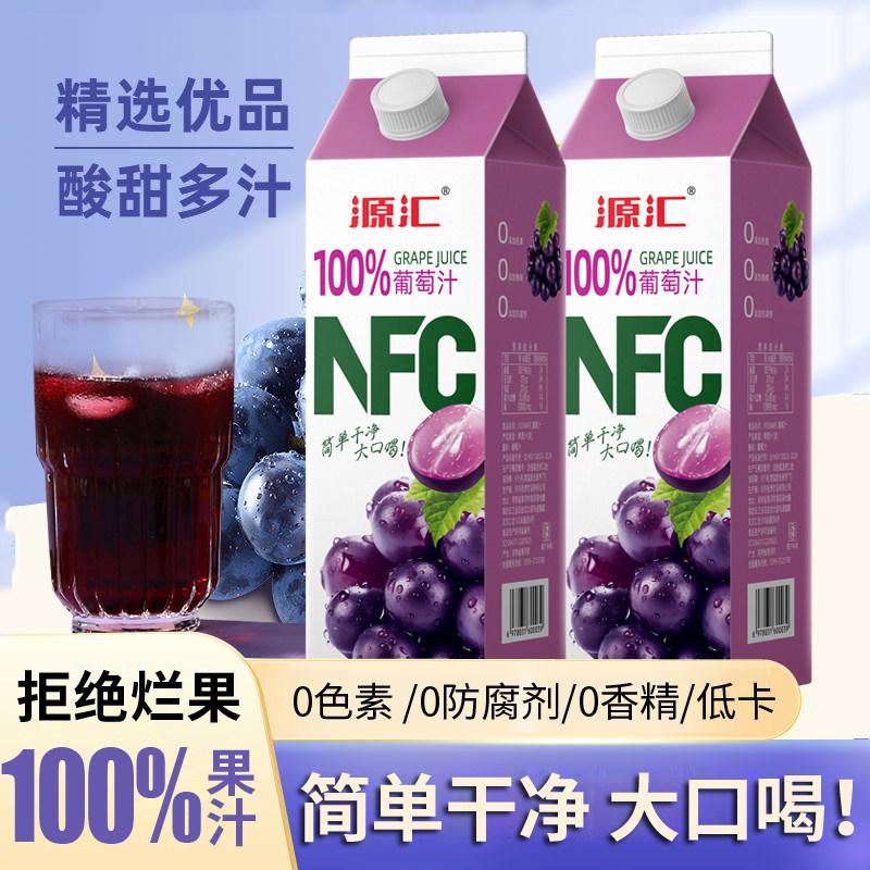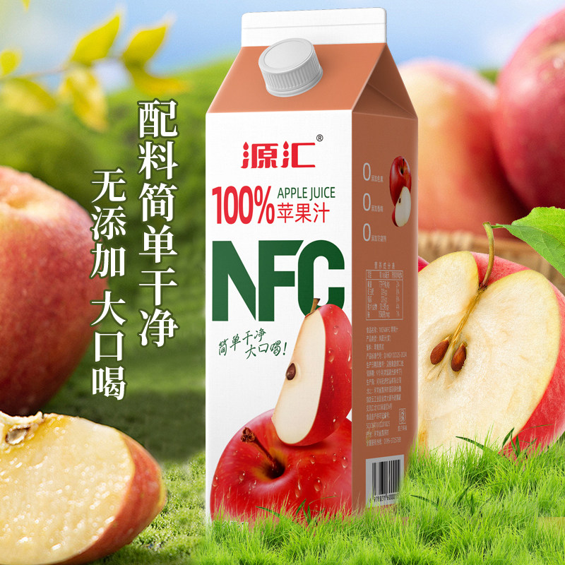 源汇NFC100%果汁年货苹果汁葡萄汁水蜜桃汁饮料整箱新货1L*2盒