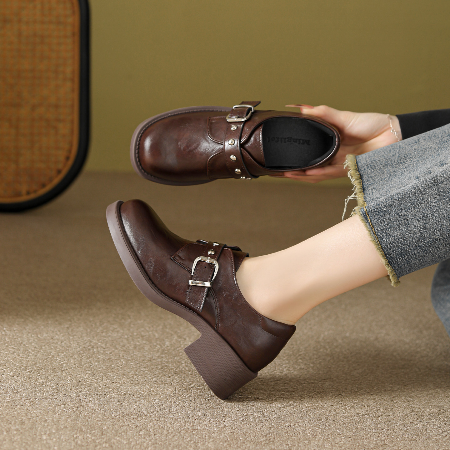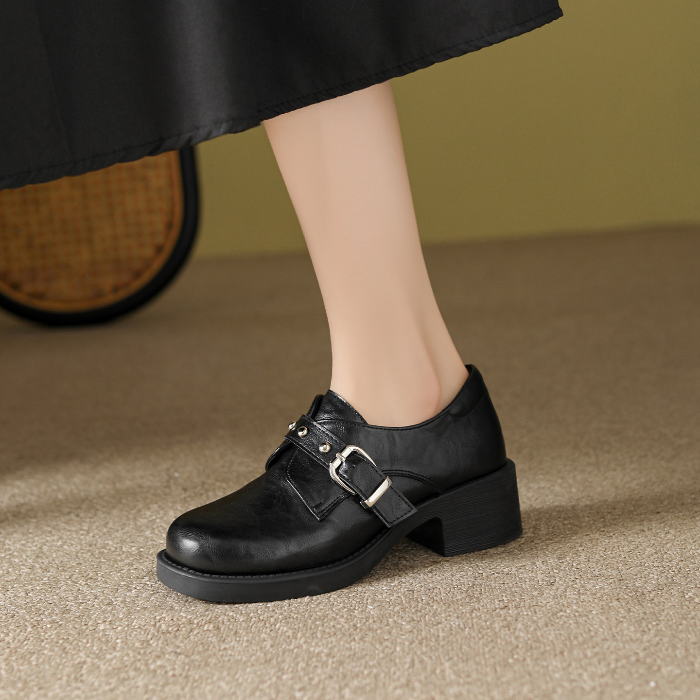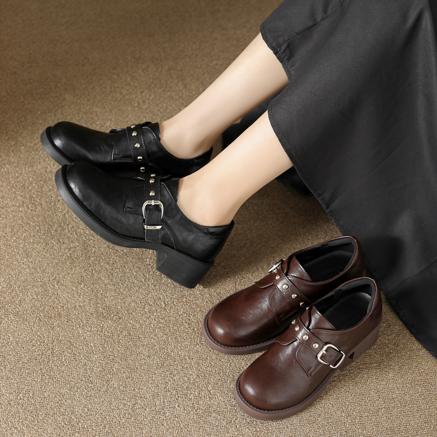 免费试穿~现货!厚底粗跟乐福鞋
