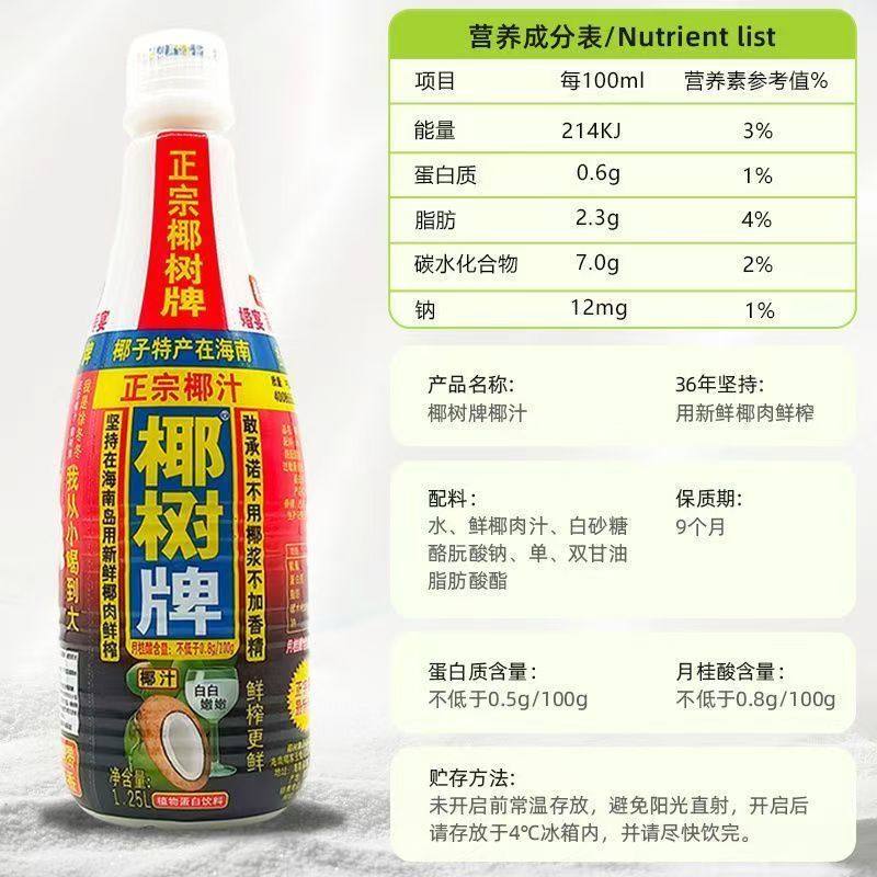 椰树牌椰汁海南特产1.25L大瓶整箱装椰奶饮料口感醇厚