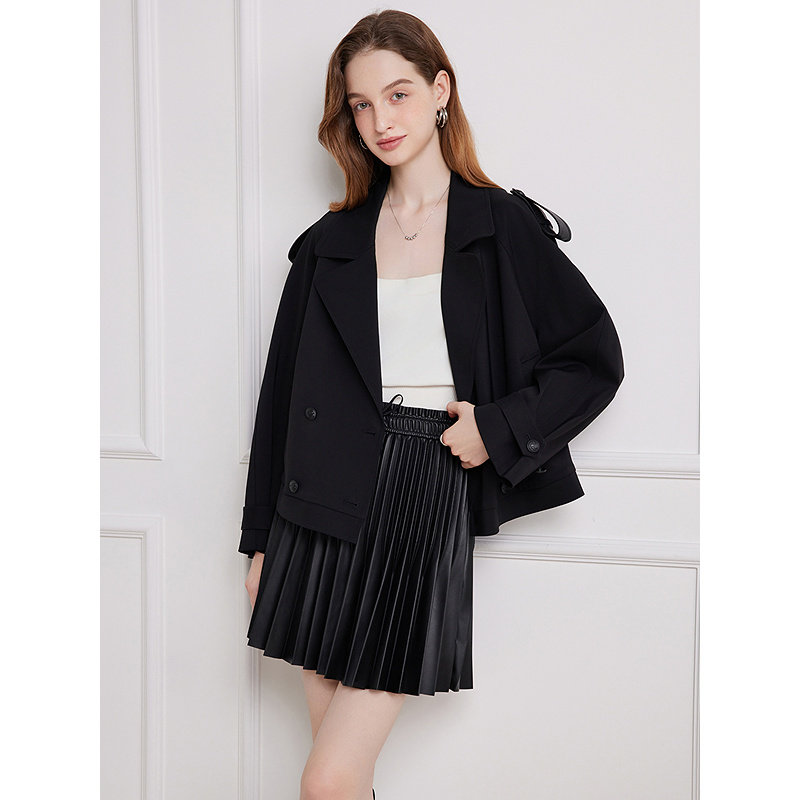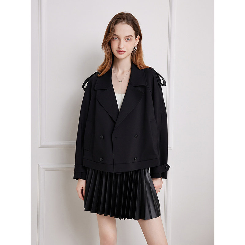 Goodland美地女装2025秋季新品拼接风衣外套短款LC35307020