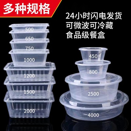 食品级长方形一次性餐盒加厚圆形快餐外卖家用饭盒水果打包碗带盖