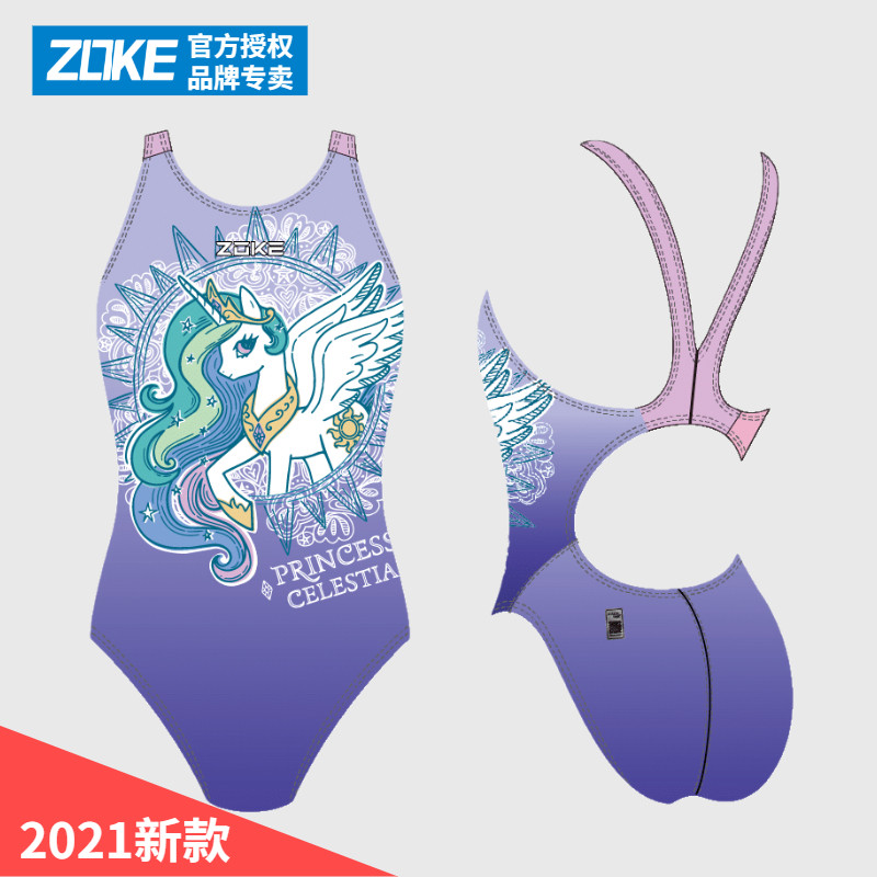 洲克新款儿童可爱泳衣女童青少年连体三角专业训练比赛游泳衣