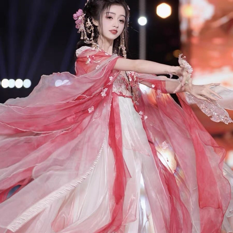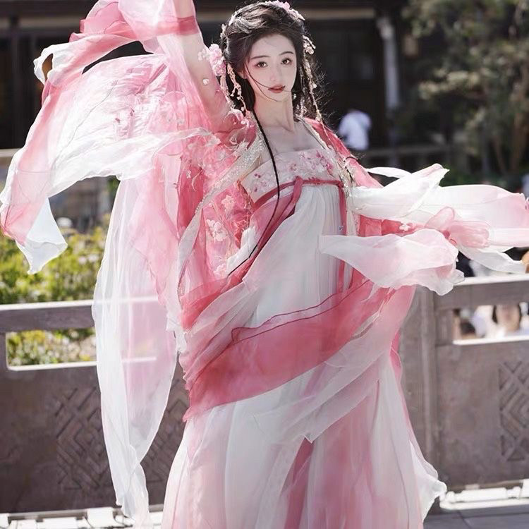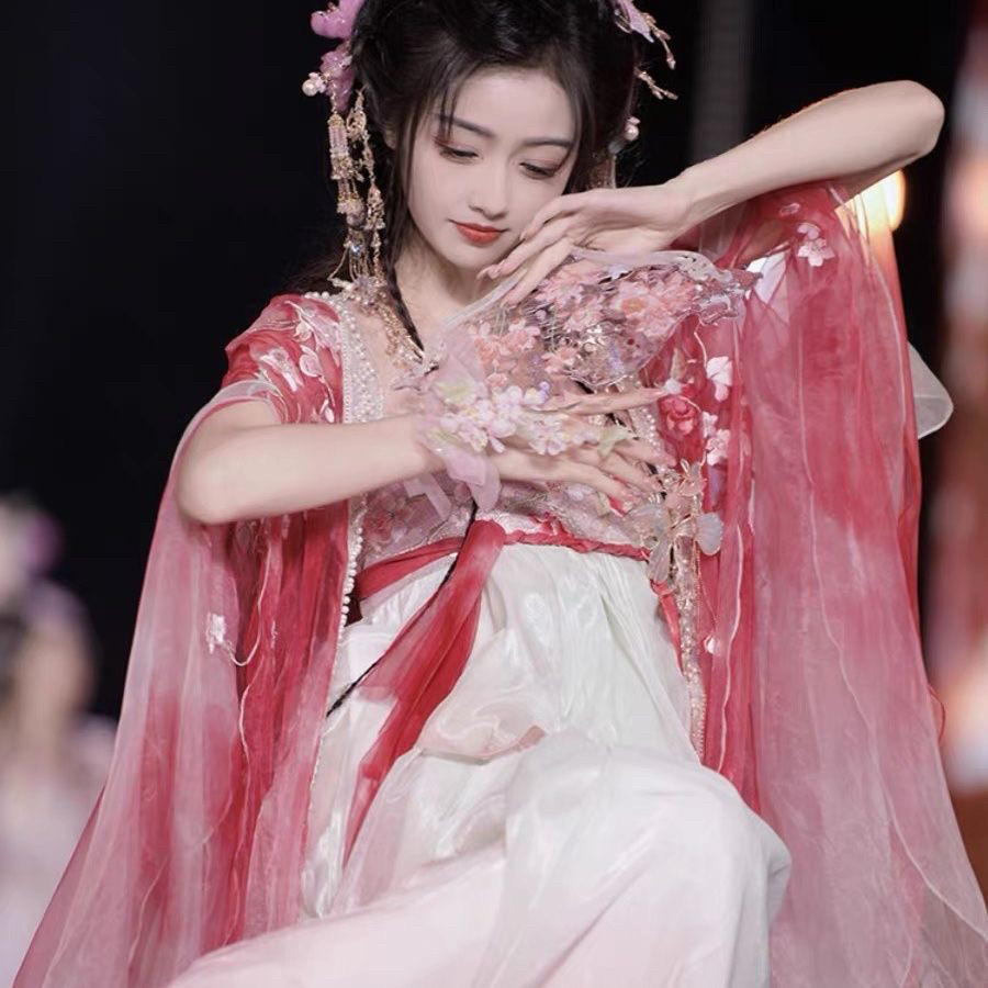 原创汉服【桃花】十二花神唐制齐胸蝴蝶袖超仙重工刺绣春夏套装