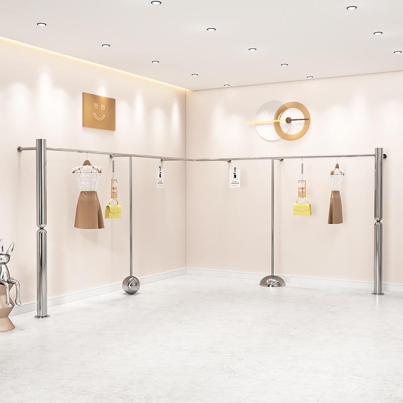 服装店陈列架上墙壁挂式不锈钢童装挂衣架货架女装店铺落地展示架