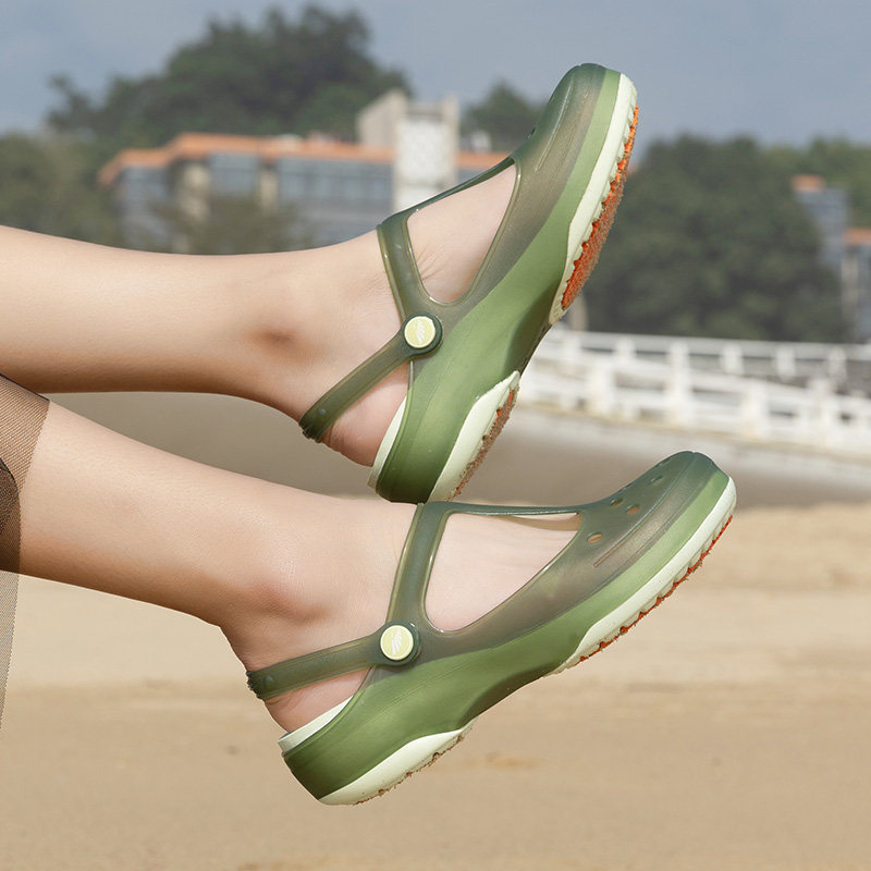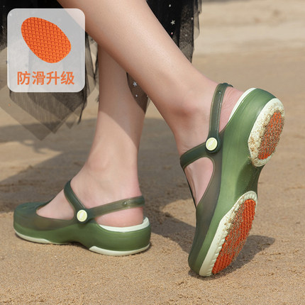 高端洞洞鞋夏防滑厚底网红护士拖鞋孕妇海边沙滩包头凉鞋果冻鞋女