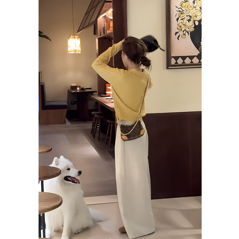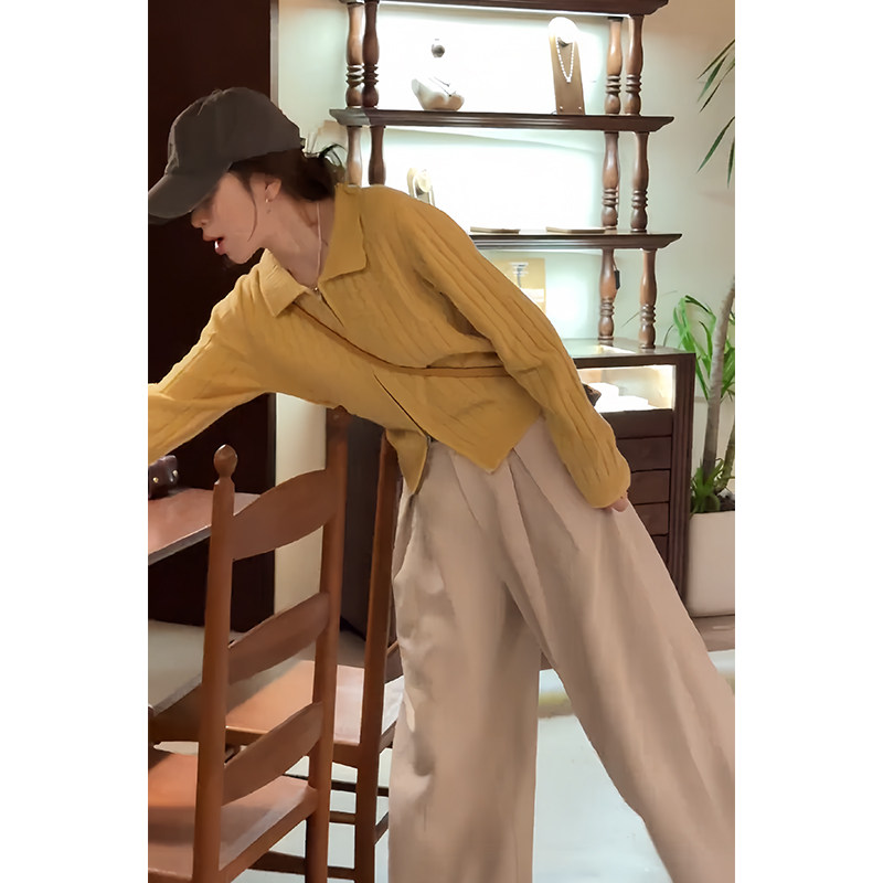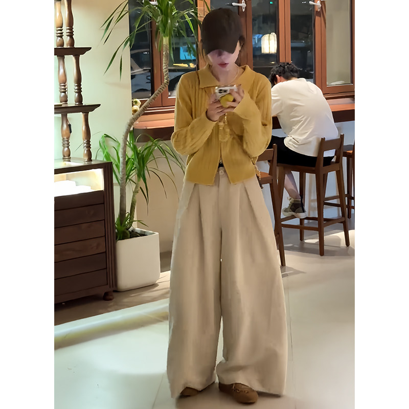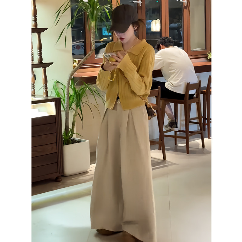 秋日ootd穿搭一整套慵懒风设计感减龄针织开衫上衣休闲阔腿裤套装