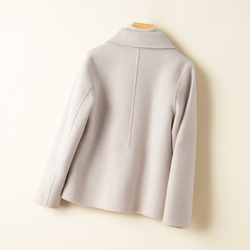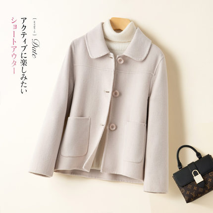 2025春焕新季赫本风双面羊绒大衣女短款小个子娃娃领纯色毛呢外套