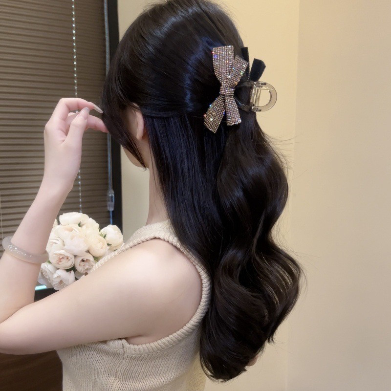 星光闪闪蝴蝶结大号抓夹女2025新款后脑勺盘发发饰水钻发夹鲨鱼夹