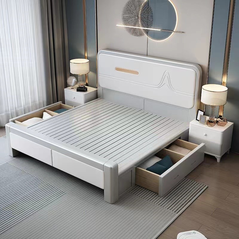 实木床现代简约1.8米主卧双人床全实木1.5米白色单人床储物婚床