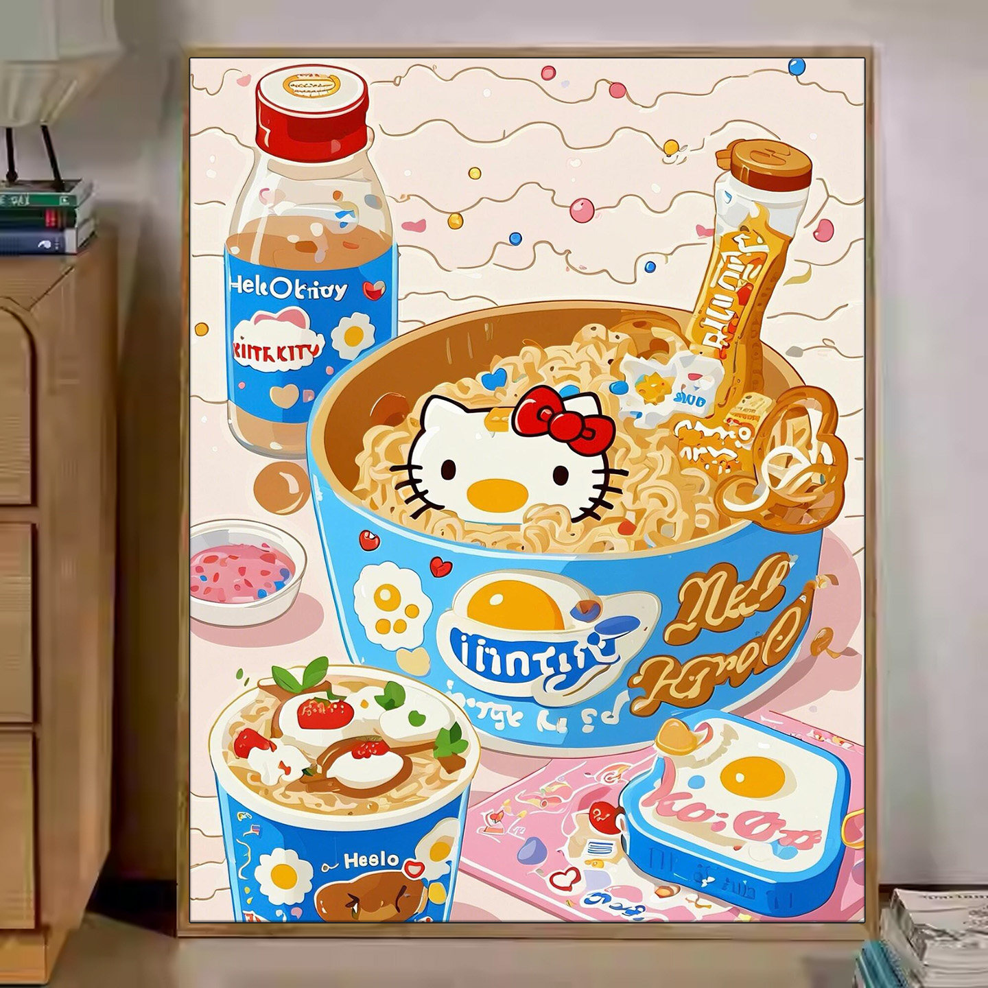 Kitty凯蒂猫美食数字油画diy填色卡通可爱油彩画手工涂色解压画