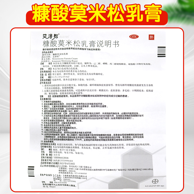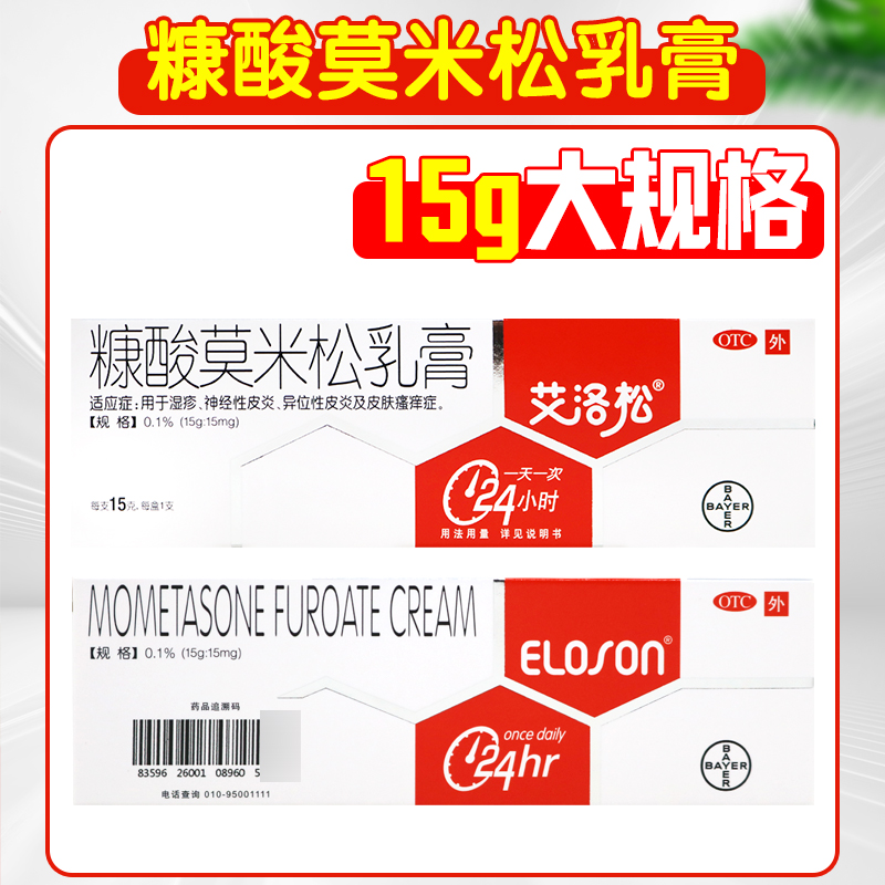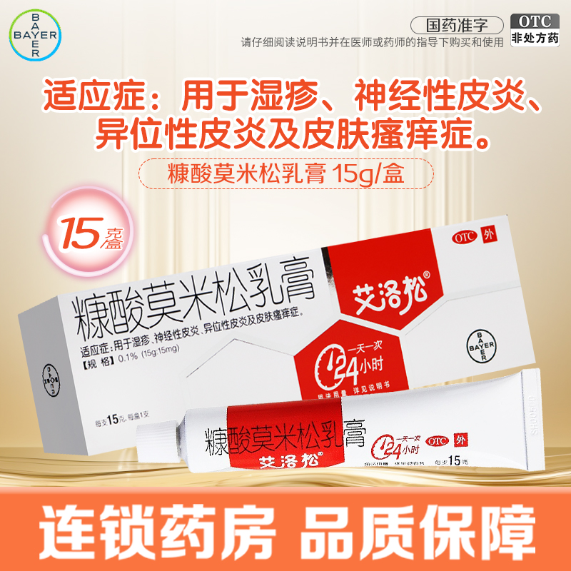 拜耳艾洛松正品糠酸莫米松乳膏15g神经性皮炎湿疹皮肤瘙痒软膏药