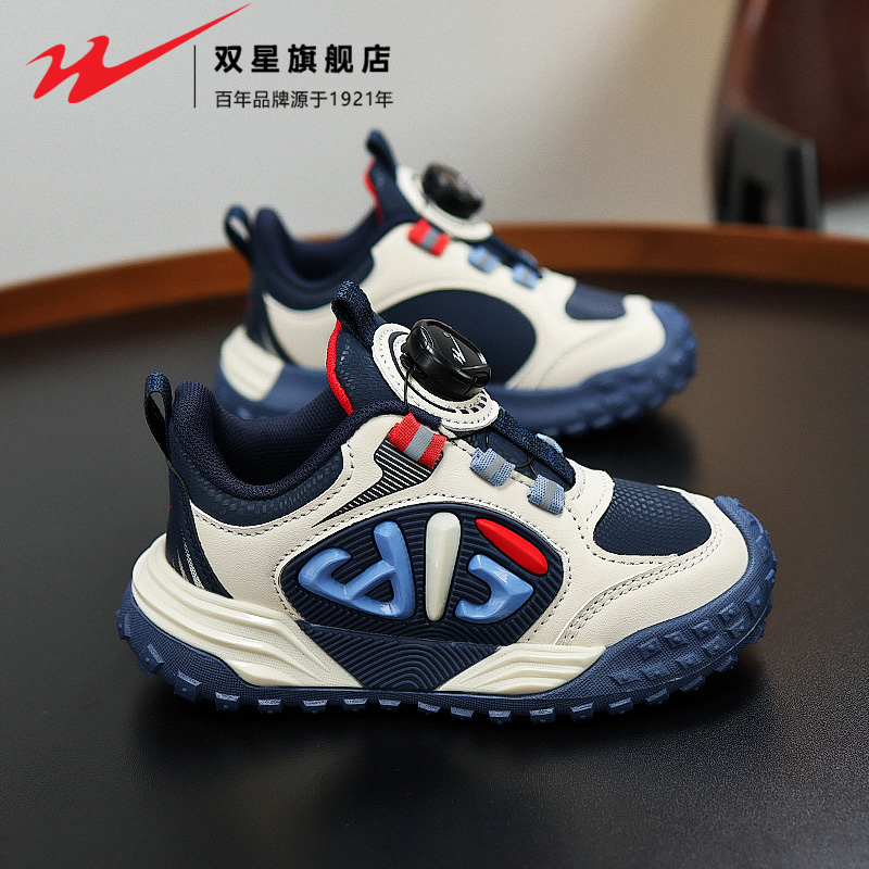 双星女童鞋2025新款秋季皮面防水男孩中大童轻便儿童运动跑步鞋子