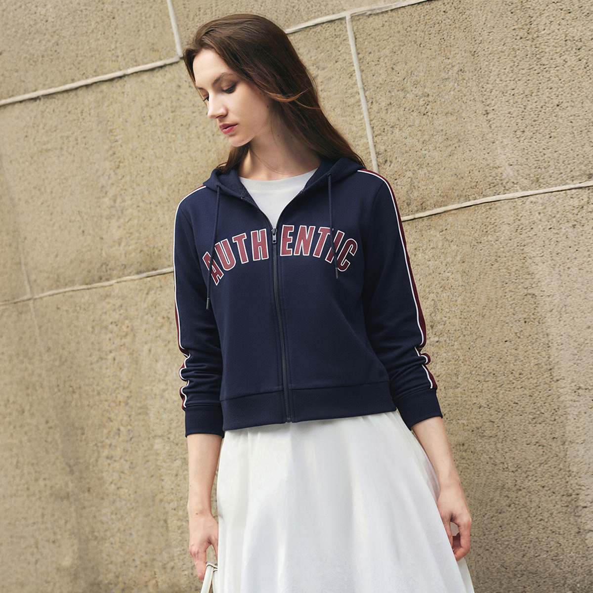 Kappa卡帕背靠背运动卫衣短款收腹连帽针织开衫美式字母长袖外套