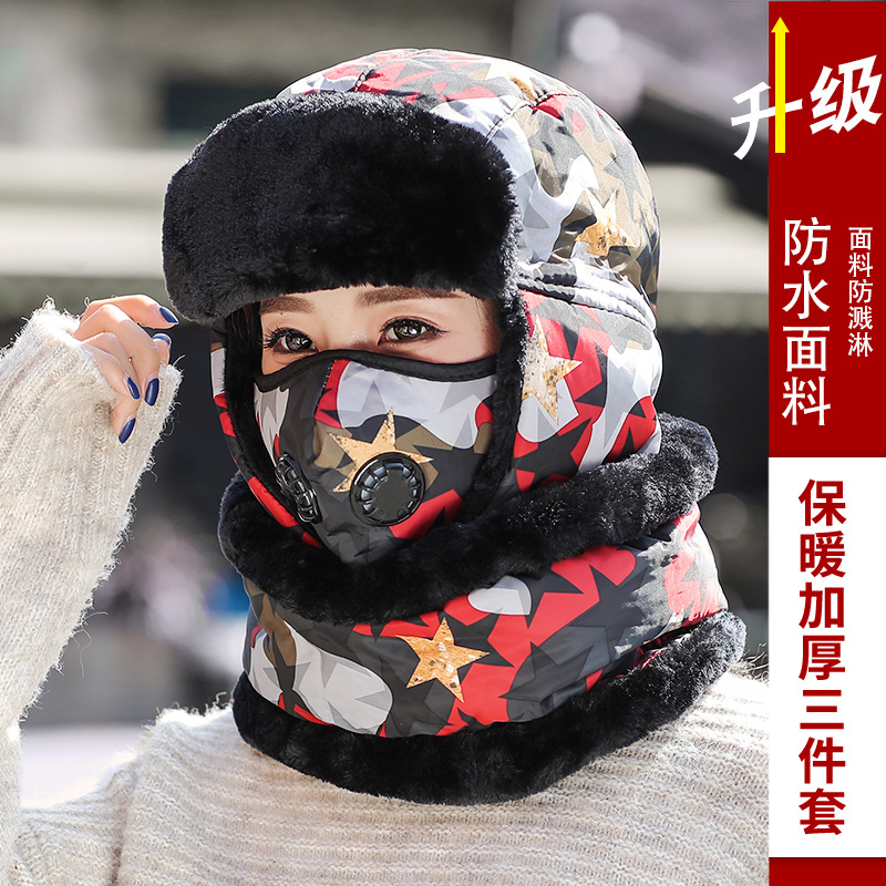 雷锋帽子男棉帽女电动车骑行保暖防寒防风护耳户外围脖口罩冬天