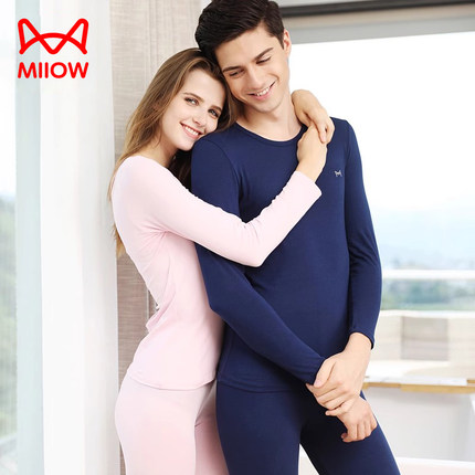 猫人秋衣秋裤薄款套装男士打底衫男修身纯棉女士红色全棉保暖内衣