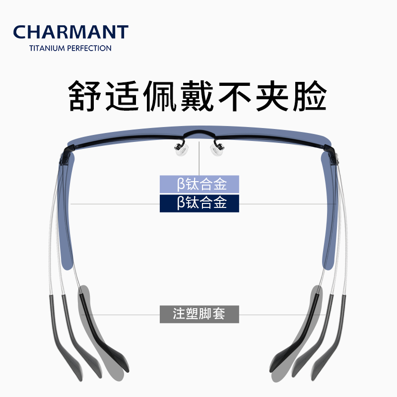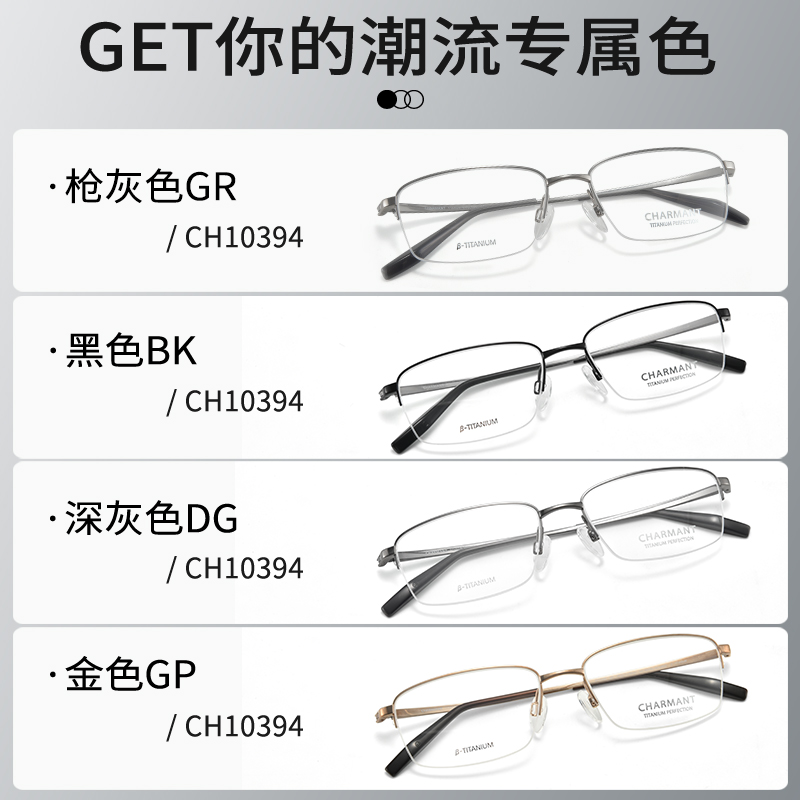 CHARMANT夏蒙男商务系列β钛近视眼镜框休闲半框光学镜架CH10394