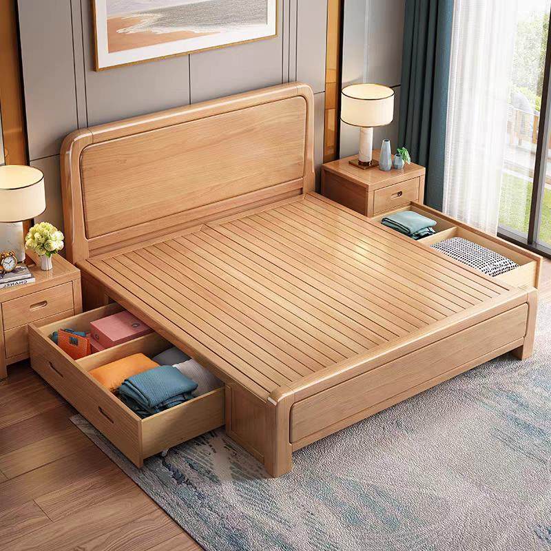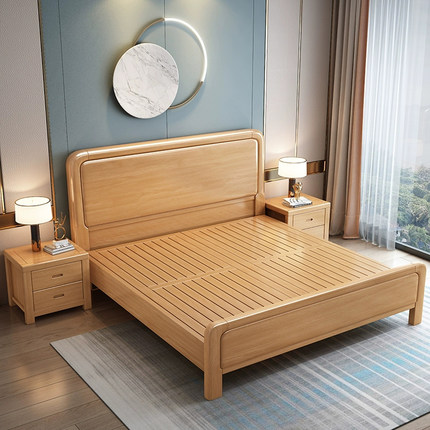 天坛家具榉木实木床主卧1.8米双人床1.5现代简约原木1.35m1.2小户