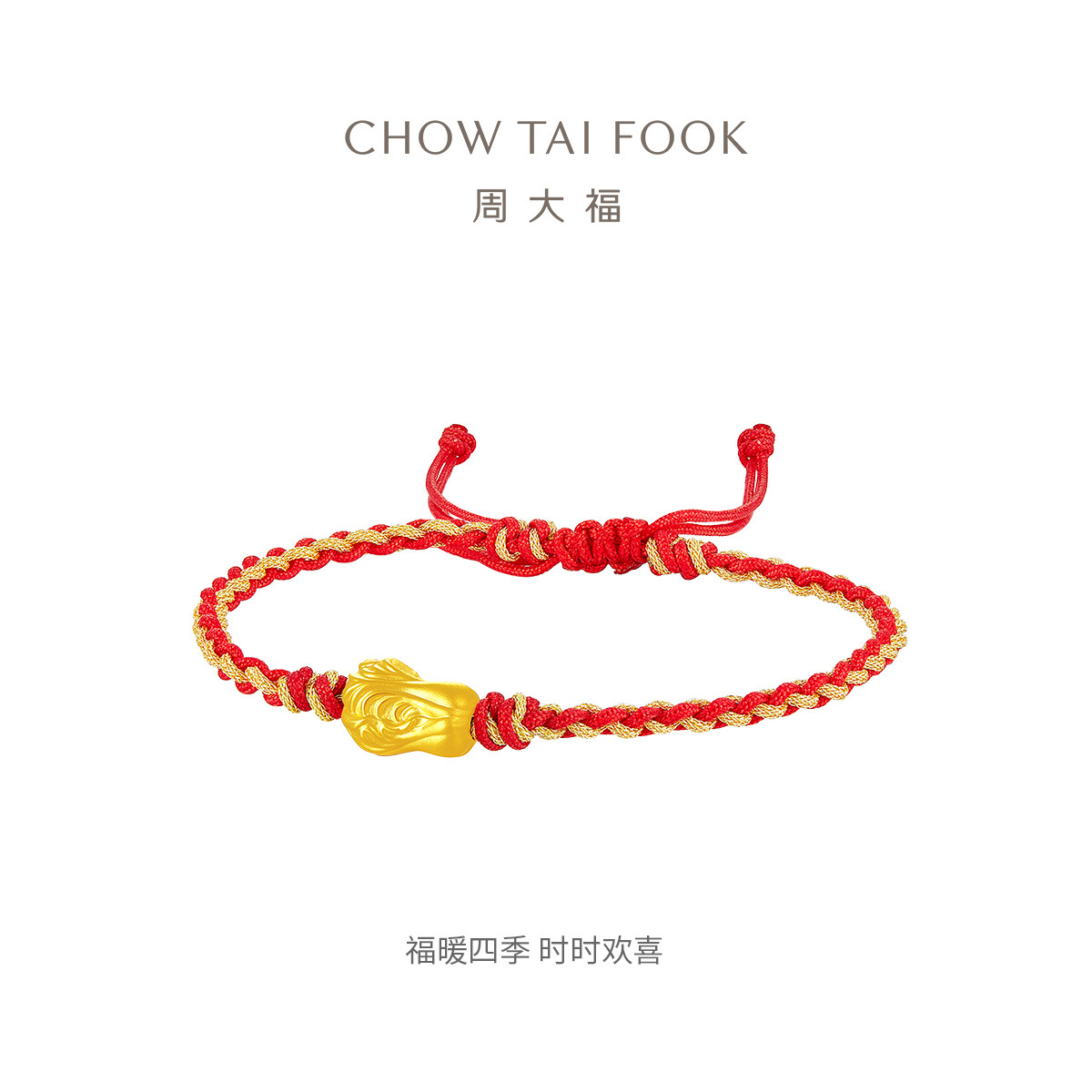 周大福文化祝福系列白菜足金黄金吊坠转运珠配绳EOR1037礼物官方