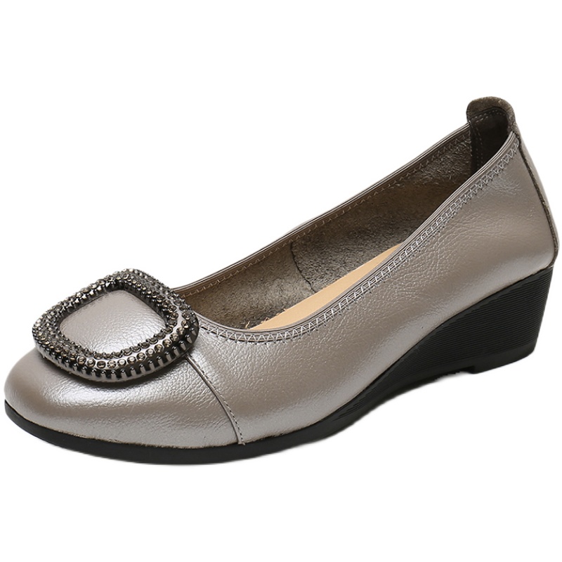 舒适平底妈妈鞋休闲坡跟女士皮鞋