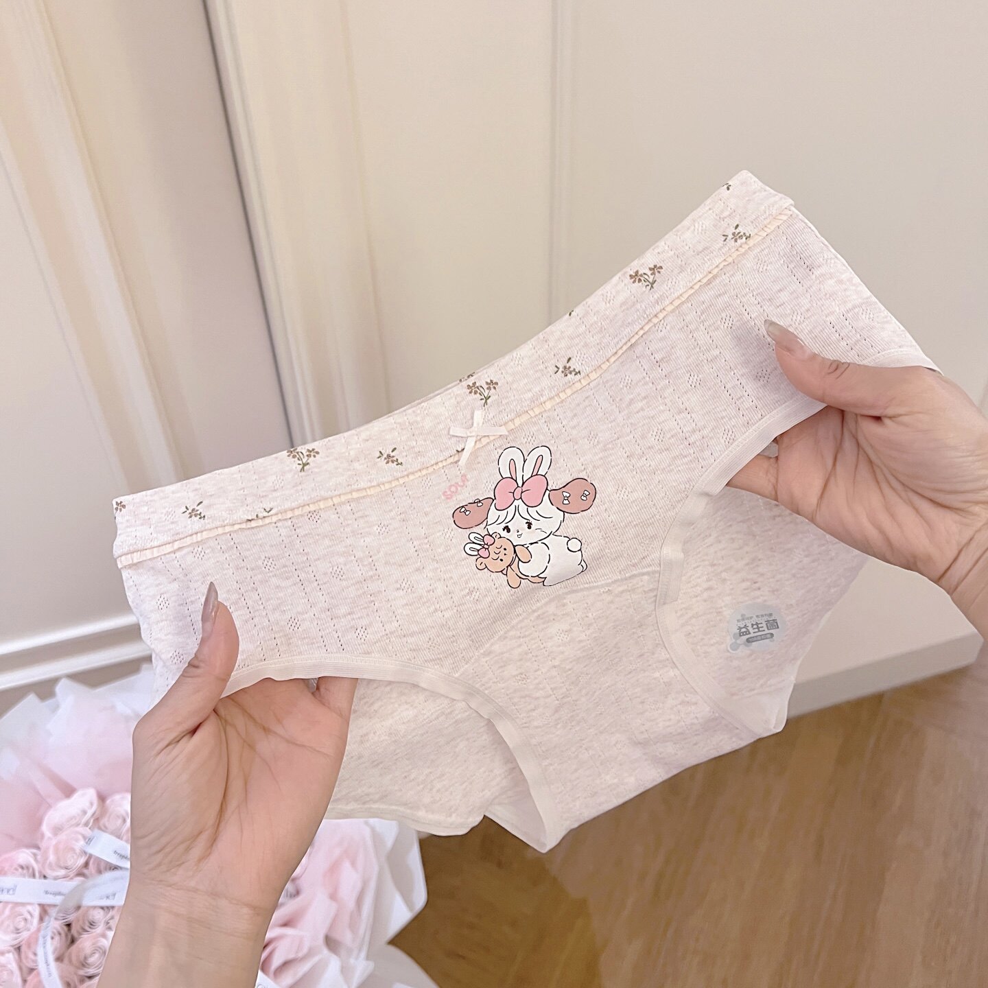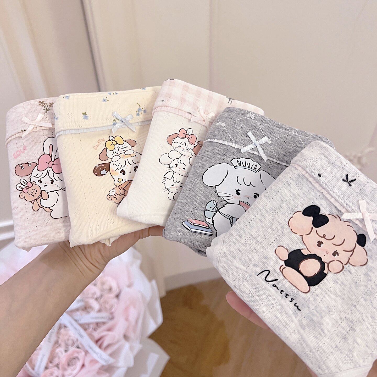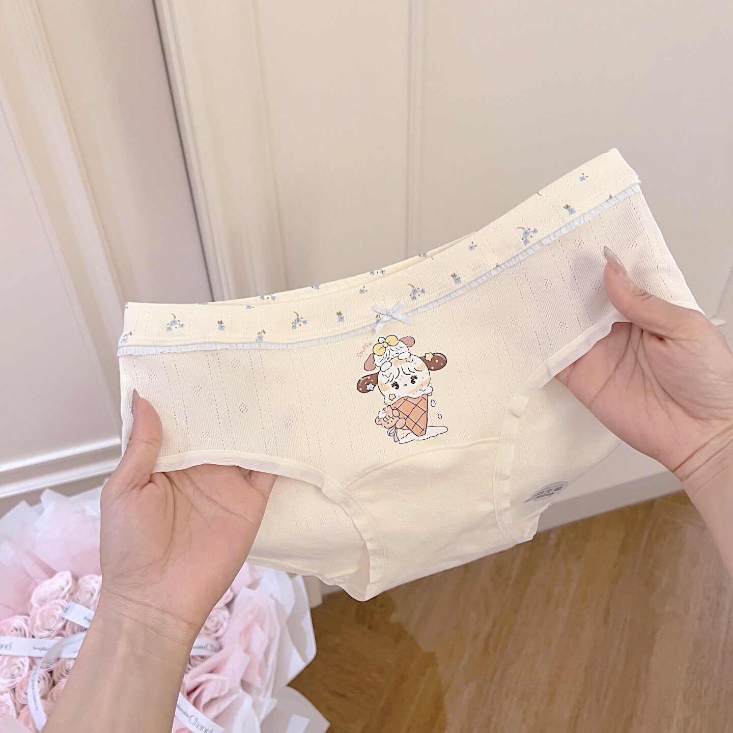 Mikko甜心~日系卡通印花10A纯棉女加长裆包臀透气三角裤学生中腰