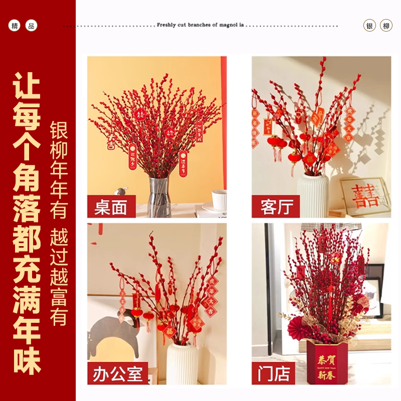 银柳真花鲜枝干花摆件室内客厅鲜花绿植新年年宵花卉植物过年春节