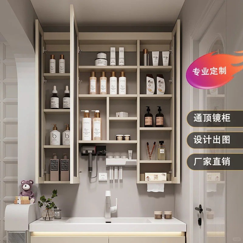 定制浴室通顶镜柜单独智能镜箱卫生间镜子收纳一体挂墙式带置物架