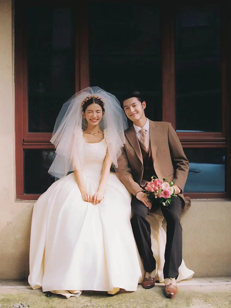 法式赫本风修身轻婚纱新娘超仙气质复古出门纱简约缎面旅拍婚纱