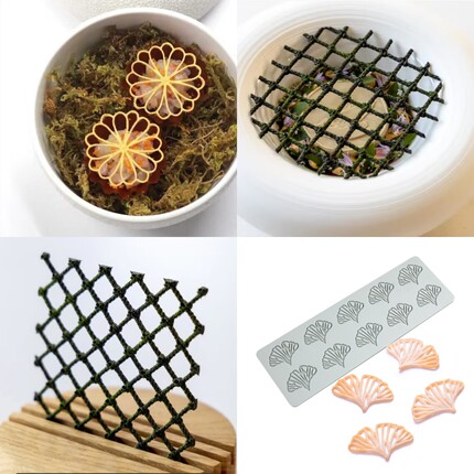 方形网格花朵蕾丝创意法餐点缀西餐分子料理摆盘装饰硅胶模具镂空