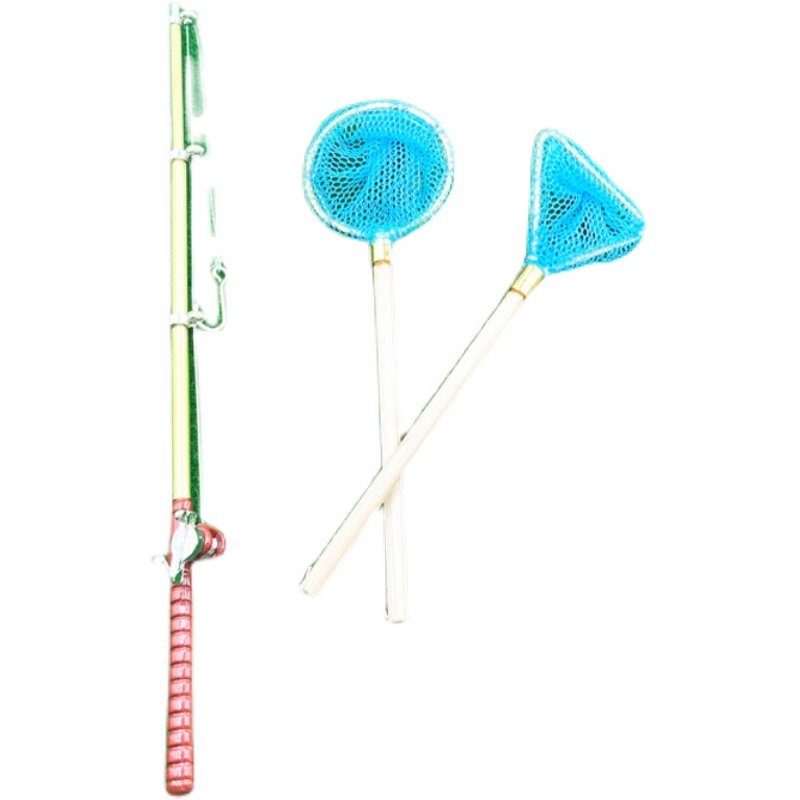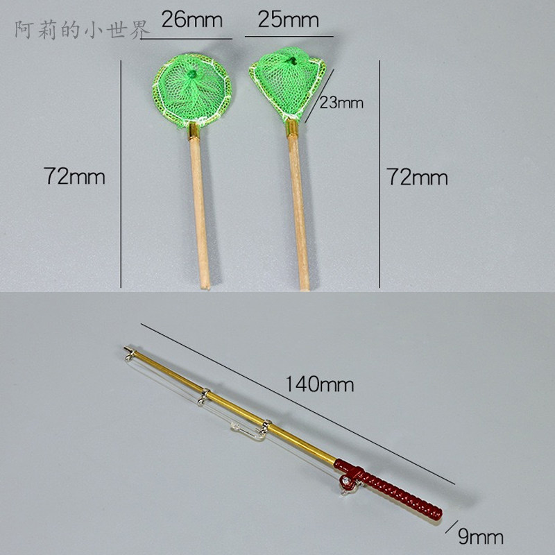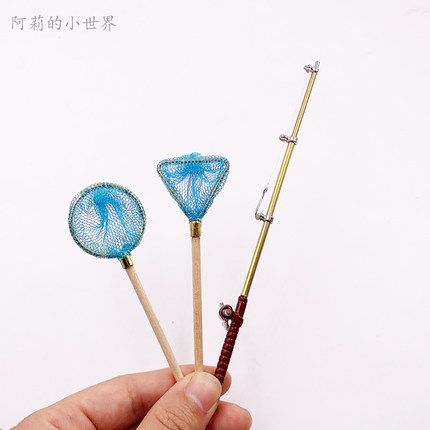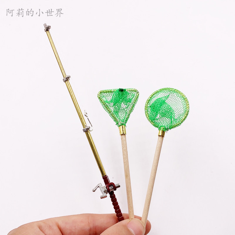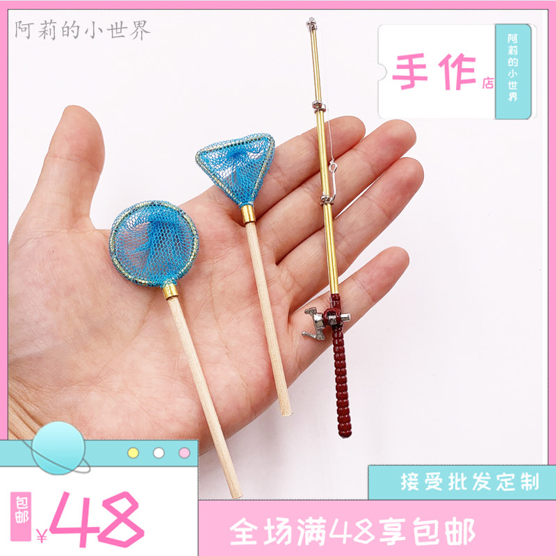 娃娃屋摆件微缩食玩场景配件过家家玩具迷你渔具钓鱼竿捕鱼网模型
