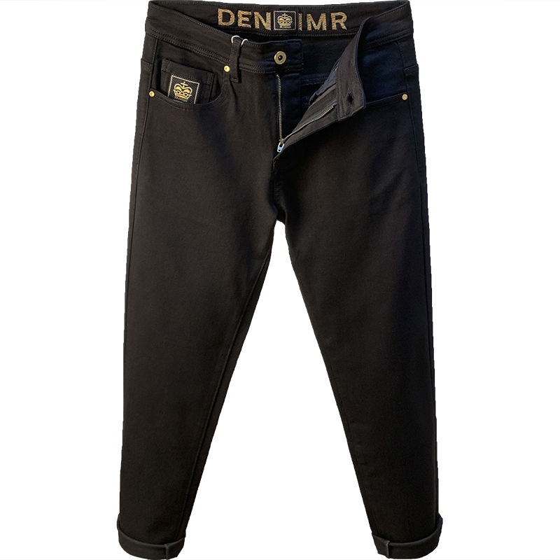 黑色高端男士牛仔裤秋冬季潮流绣花小脚长裤修身弹力锥形哈伦裤男