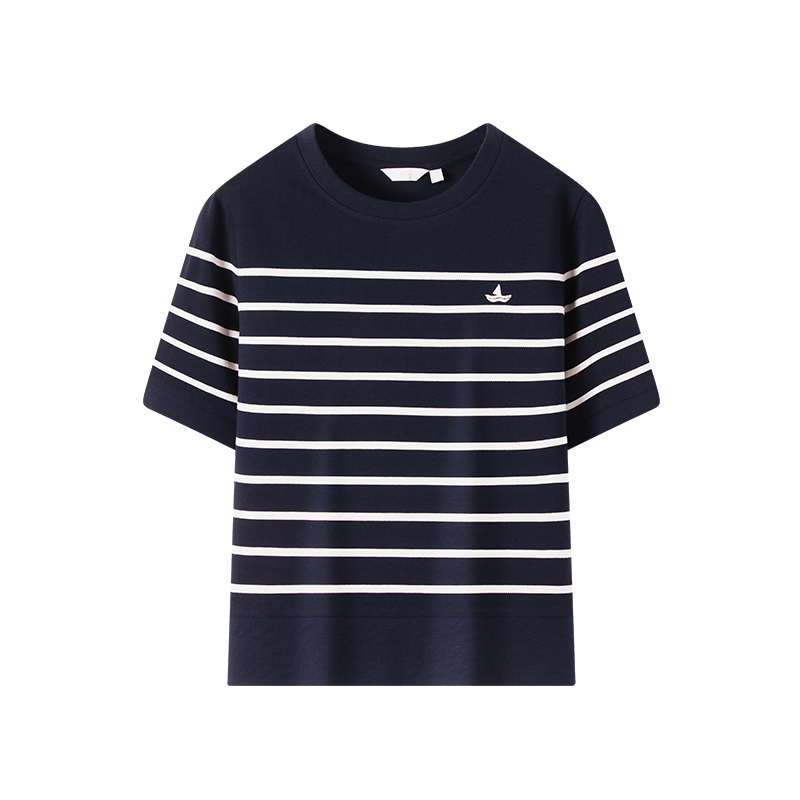 [纯棉]Navigare意大利小帆船条纹五分袖T恤女夏季新款体恤海魂衫