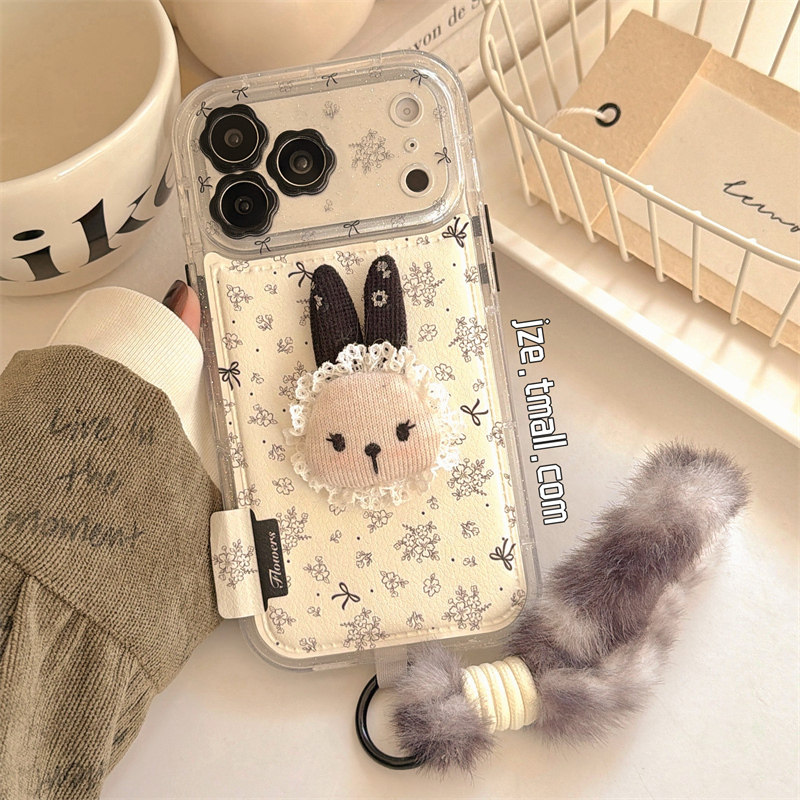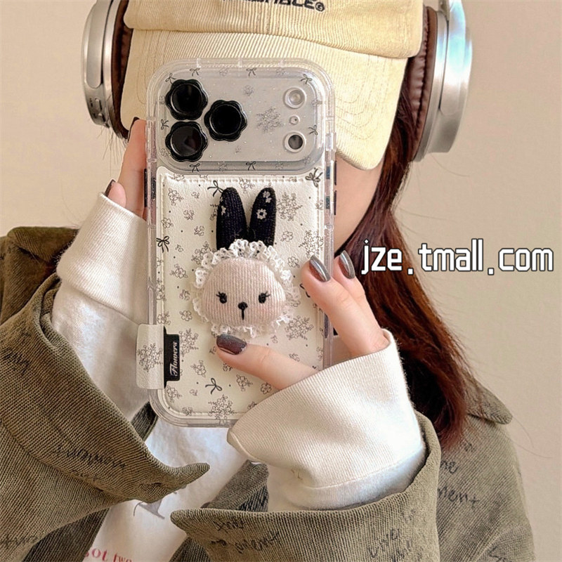 jze皮质可爱卡通立体兔子花朵ins适用苹果17ProMax手机壳iphone15新款16pro少女心13全包15pro防摔手机套14韩