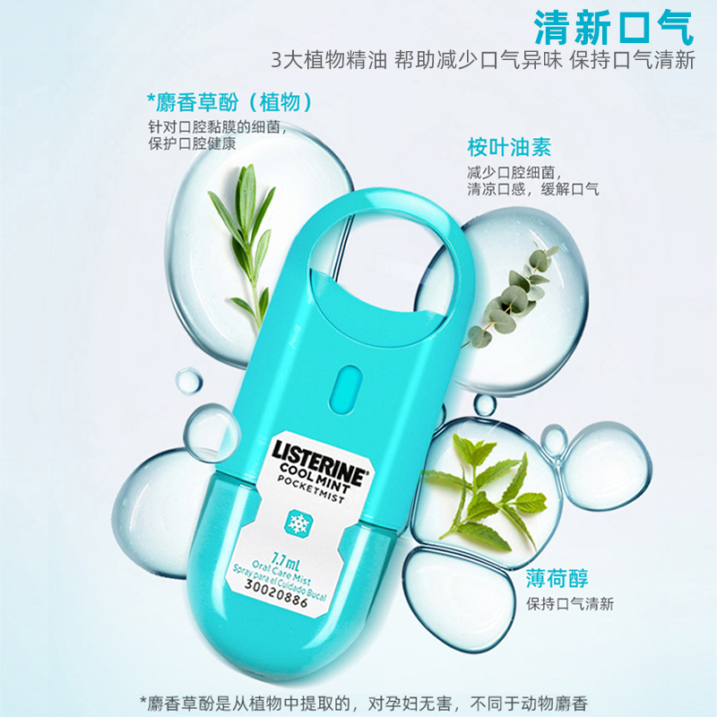 李施德林冰蓝口喷2支 口气清新剂便携喷雾剂男女减轻口臭气异味