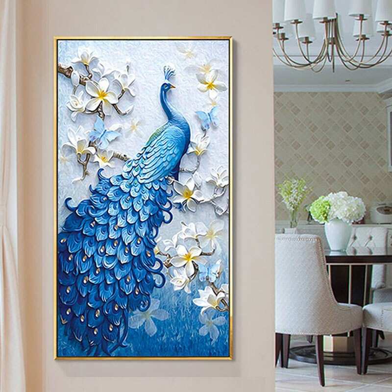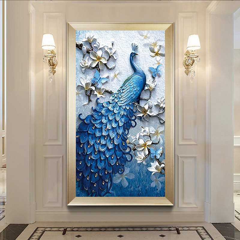 5D钻石画十字绣满钻孔雀玄关装饰画贴钻画现代简约diy钻石贴画