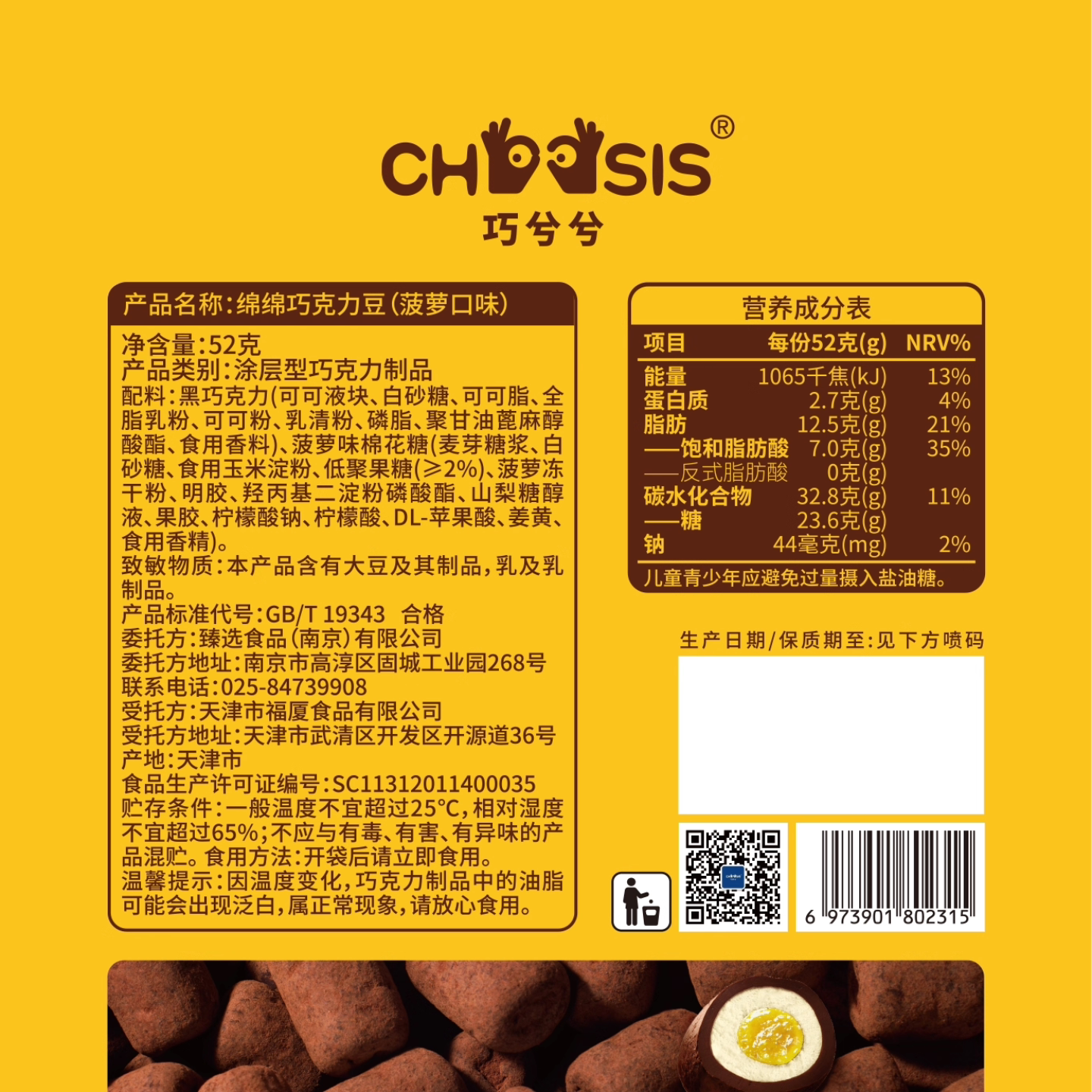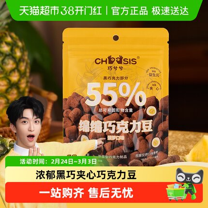 巧兮兮绵绵菠萝黑巧克力豆52g黑巧棉花软糖夹心糖年货休闲小零食