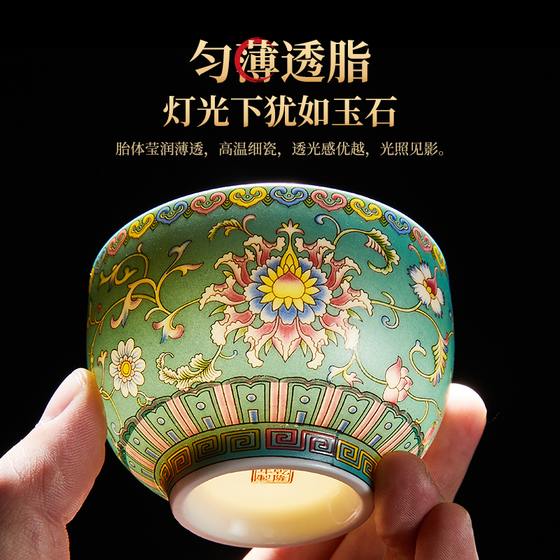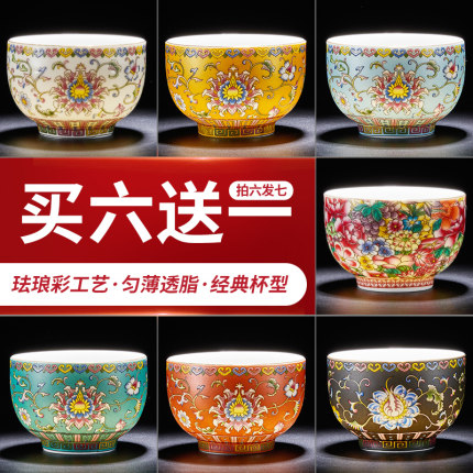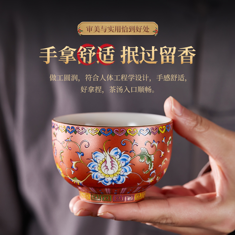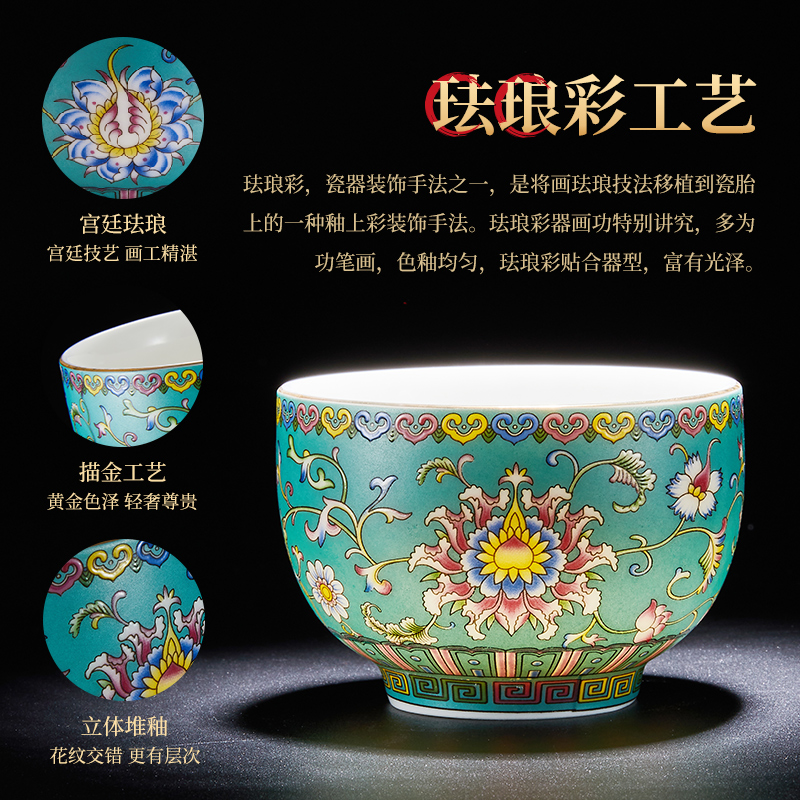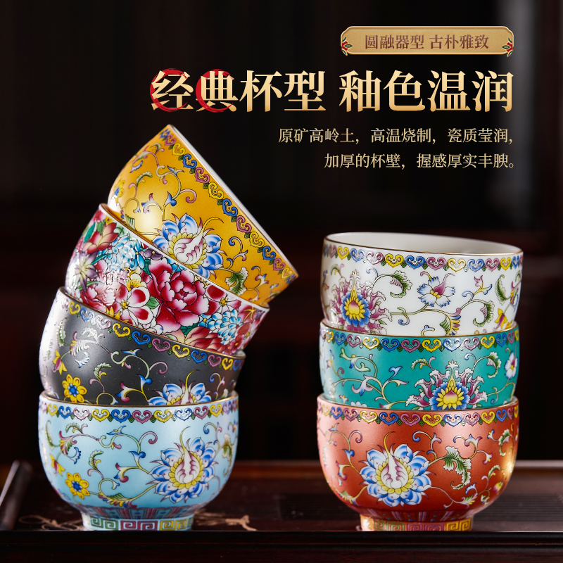 青花瓷茶杯陶瓷功夫单杯珐琅彩主人杯复古茶具茶盏套装茶碗品茗杯