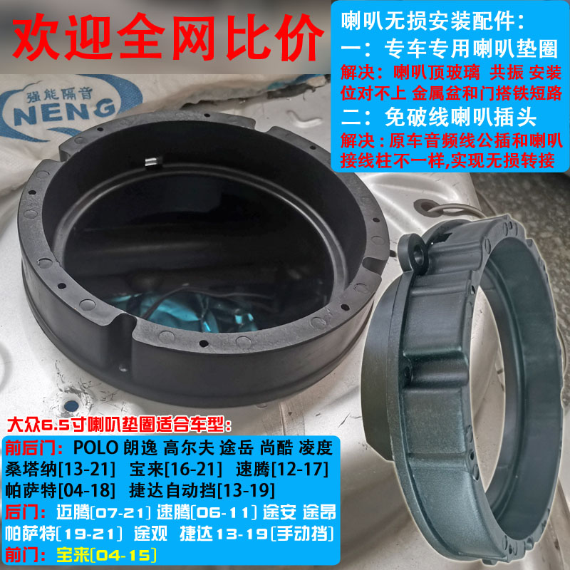 大众汽车音响改装6.5寸喇叭垫圈支架车载扬声器免破线转接母插头