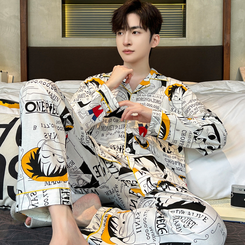 睡衣男春秋款纯棉长袖薄款夏季青少年男生动漫海贼王家居服套装
