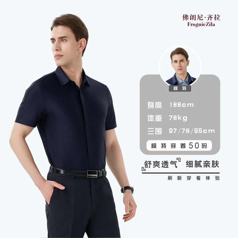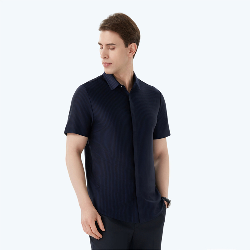 【100%桑蚕丝】男士短袖休闲衬衫百搭条纹垂顺商务短袖休闲衬衫男